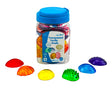 These translucent tactile seashells offer children sensory experiences like sight, sound and touch to explore and engage. Use the shells with a light box or create imprints in clay and dough. They're also ideal to teach early number concepts, such as sorting, matching, comparing, sequencing, patterning and counting. The shells measure 5.5cm wide. Includes 6 colours and 6 different tactile surfaces. Comes stored in a plastic jar.