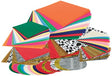 This box of assorted colours and animal prints contains: 150 large tissue squares, 300 small tissue squares, 300 tissue circles, 250 tissue triangles. Large square measures 25cm x 25cm.