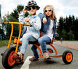 With our Two in a Row Taxi, best friends can be given a comfortable ride. Two seats are mounted in a row and an anti-slip board gives a secure footing for a third passenger. A backrest on both seats provides special comfort. Measures 112cmL x 56cmW x 64cmH. Seat height 38cm. Ages 4yrs+.